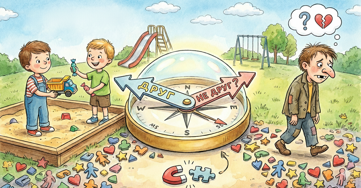 Первое слово, которое говорит ребенок — «мама». А как насчет слова «друг»? Если оно и не второе, то уж точно одно из первых. Мы начинаем собирать эту мозаику чуть ли не с песочницы. Вот Васька — друг, я с ним вчера машинкой поделился, а он мне конфету дал . А это Ромка идет — нет, не друг, у него зубы выпали и нос крючком. И детское сердце, как компас вертится в поиске. Потом жизнь усложняется. И мы, как уставшие библиотекари в огромном архиве, сортируем людей по полочкам: друзья, приятели, знакомые, соседи... Загляни в инстаграм — и кажется, что друзьями можно закидать, как осенними листьями. Мы выходим на рынок, а с каждого прилавка: «Друг, посмотри какие фрукты!» или еще громче: «Брат, не проходи мимо!». И слово это, брошенное на ветер дешёвой сделки, летит по ветру, пустое и легкое. И в этом шуме начинаешь тонуть. Кто есть кто? Вспоминается суровая проверка у Высоцкого — в горах, на краю, где дружба измеряется не словами, а страховочной верёвкой и хриплым «Держись!». Если не сдр