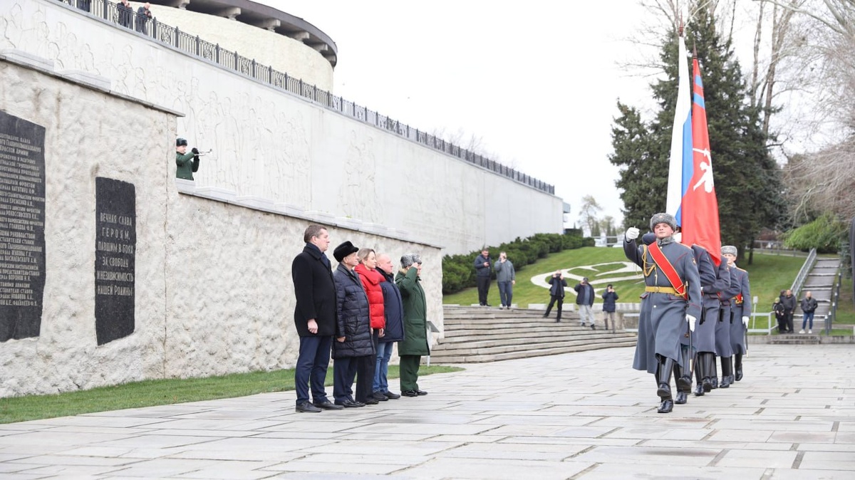 🚩 Копия Знамени Победы завершила сегодня на главной высоте России – Мамаевом кургане – свое торжественное шествие по стране в рамках заключительного этапа всероссийской патриотической акции «Марш Знамени Победы», которая проходит в честь 80-летия Великой Победы и Года защитника Отечества. Участниками торжественного мероприятия стали представители Молодежного парламента, активисты патриотических молодежных объединений, воспитанники военно-патриотических клубов, которые возложили цветы к Вечному огню в Зале Воинской Славы, почтили память павших героев. 🌺 С приветственным словом к собравшимся обратилась Надежда Кулешова. Парламентарий подчеркнула значимость проведения мероприятия в Волгограде, жители которого свято чтут подвиг советского солдата, отстоявшего Сталинград. «Стены Зала Воинской Славы Мамаева кургана хранят память о тысячах воинов, которые не просто отвоевали город у врага, – ценой своей жизни они изменили ход мировой истории, проложили путь к Великой Победе, стали символо