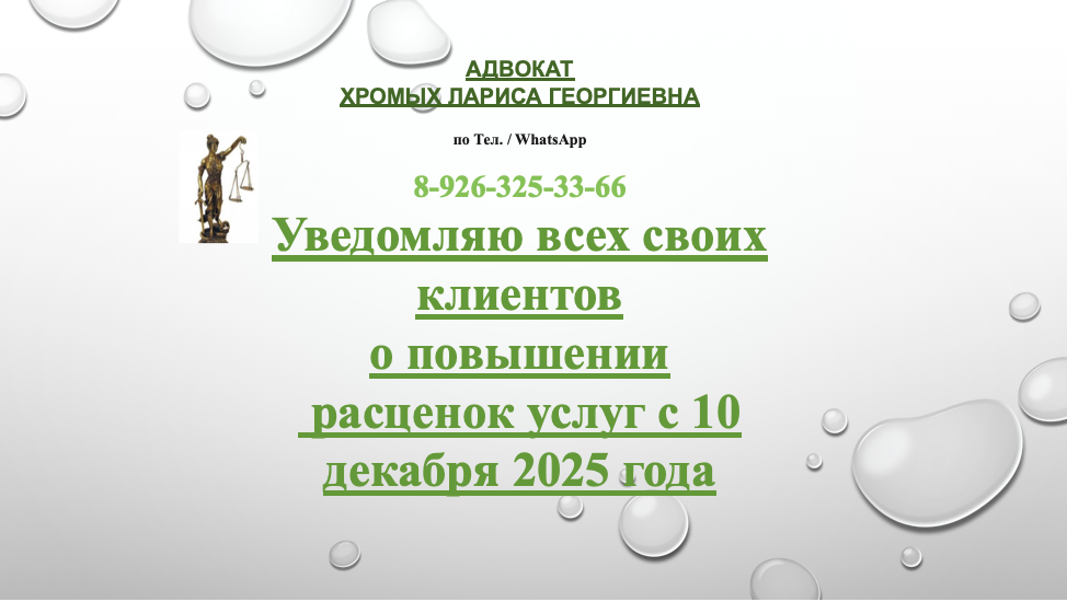 Уведомление о повышении цен на услуги Адвоката Хромых Л.Г.