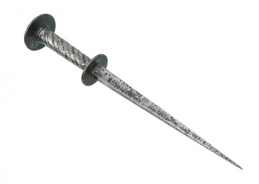 Кинжал милосердия (мизерикордия, мизерикорд) Кинжал милосердия (от фр. misericorde — «милосердие, пощада») — особое холодное оружие, появившееся в Западной Европе в XII веке. Конструктивные особенности Это кинжал с узким клинком трёхгранного либо ромбовидного сечения длиной 20–40 см. Такое сечение обеспечивало: повышенную «бронебойность» — возможность проникать между сочленениями рыцарских доспехов; прочность клинка при высоких нагрузках. Рукоять обычно оснащалась гардой — для удобства использования в латных перчатках. Назначение и применение Основное предназначение кинжала — добивать поверженного противника, чтобы: избавить его от мучительной агонии; быстро лишить жизни неприятеля, не представлявшего ценности как пленник (например, если его нельзя было взять в плен для выкупа). Удар таким оружием назывался «ку‑де‑грас» (от фр. coup de grâce — «удар милосердия»). Типичные «мишени» для удара: прорезь для глаз в шлеме; отверстия в забрале; шея (если шлем был достаточно «открытым»