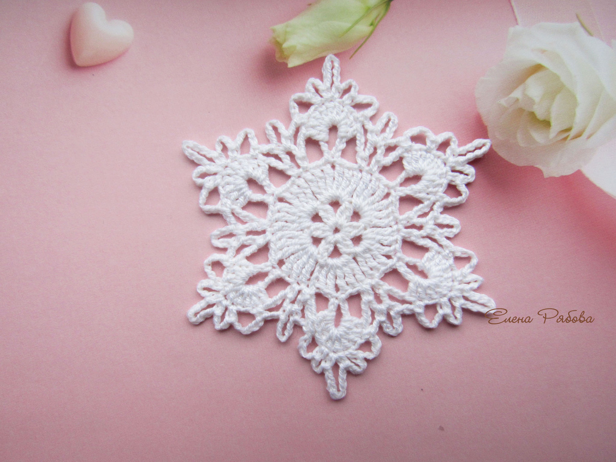 Снежинка, связанная своими руками, станет оригинальным украшением праздничного интерьера, новогодней гирлянды, открытки или альбома.