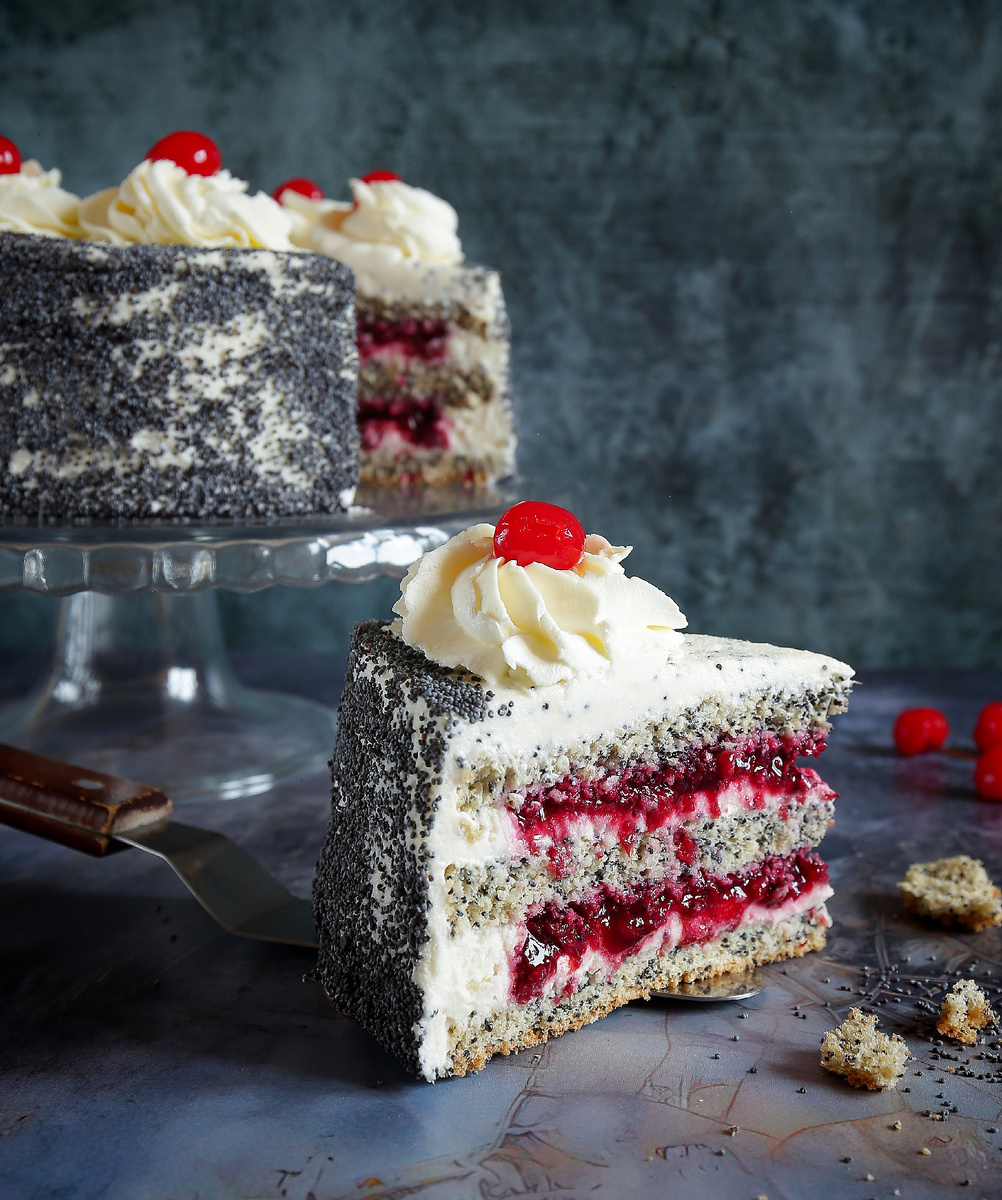 Торт "Мак-вишня": простое, но 100% вкусное сочетание. Яркий вкус вишни, как оказалось, отлично гармонирует с "ореховыми" нотками мака. Вообще же, вдохновителем для создания этого рецепта послужил многослойный чешский десерт из мака, вишневого джема, заварного крема и орехов. Этот торт не содержит сахара, калорийность его очень невысокая - около 200 Ккал на 100 гр. Бисквит выпекается из овсяной муки. Крем в этом торте можно использовать любой, в том том числе безмолочный, в этом случае получится полностью БГБК версия торта. Я использовала крем Пломбир и предлагаю выбирать крем с заварной частью, чтобы остаться верными оригиналу.