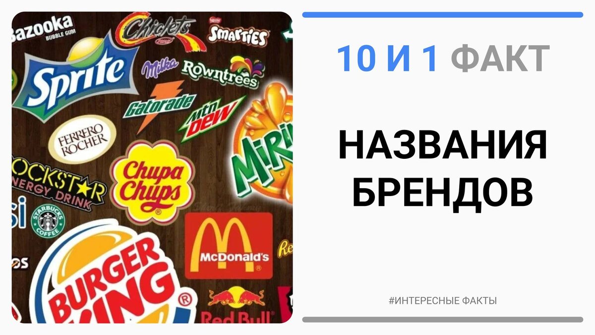 10 и 1 факт о том, как родились названия брендов Знаете ли вы, что название Google почти не прижилось? Соучредители хотели «googol», но при регистрации домена слово чуть изменили - и опечатанный вариант стал именем компании. Nike названа в честь греческой богини победы. Google произошло от искажения слова «googol» (10^100) - идея подчёркивала огромный объём информации. Starbucks получила имя по персонажу Старбаку из романа «Моби Дик». Amazon названа в честь самой большой реки амазонки. IKEA составлена из инициалов основателя Ingvar Kamprad и названий фермы и деревни Elmtaryd, Agunnaryd. Adidas - сочетание уменьшительного имени «Adi» и фамилии Dassler. Lego происходит от датского «leg godt» - «играй хорошо». Pepsi изначально позиционировалась как напиток для пищеварения - название связано с «pepsin»/«dyspepsia». Sony образовано от латинского «sonus» (звук). eBay возникло как укорочение Echo Bay - домен echobay был занят, поэтому остался eBay. Canon название взяло от буддийск