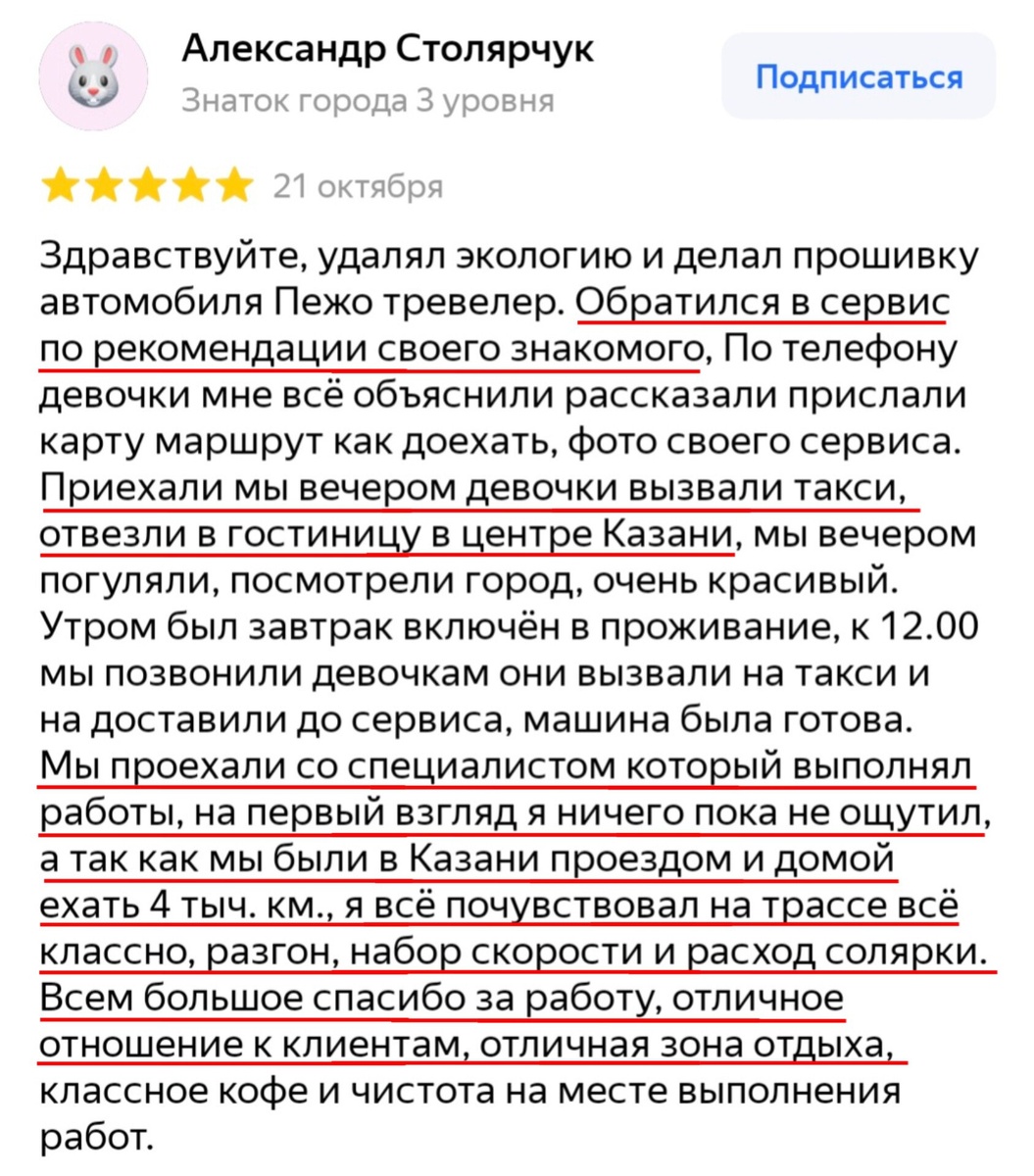 ❤️ ОТЗЫВ ВЛАДЕЛЬЦА PEUGEOT TRAVELLER 2.0D ИЗ ЯНАО Владелец приезжал к нам на комплекс: - замена сажевого фильтра на пайп - отключение EGR, AdBlue и сажевого фильтра - увеличение мощности С автомобилем работал мастер Азат. Александр, благодарим за доверие и обратную связь! 🙂 Больше отзывов о нас можно почитать: 📍 на Яндекс 📍 в 2ГИС Мы работаем по записи: Написать нам в WA +79033054194 Оставить заявку здесь