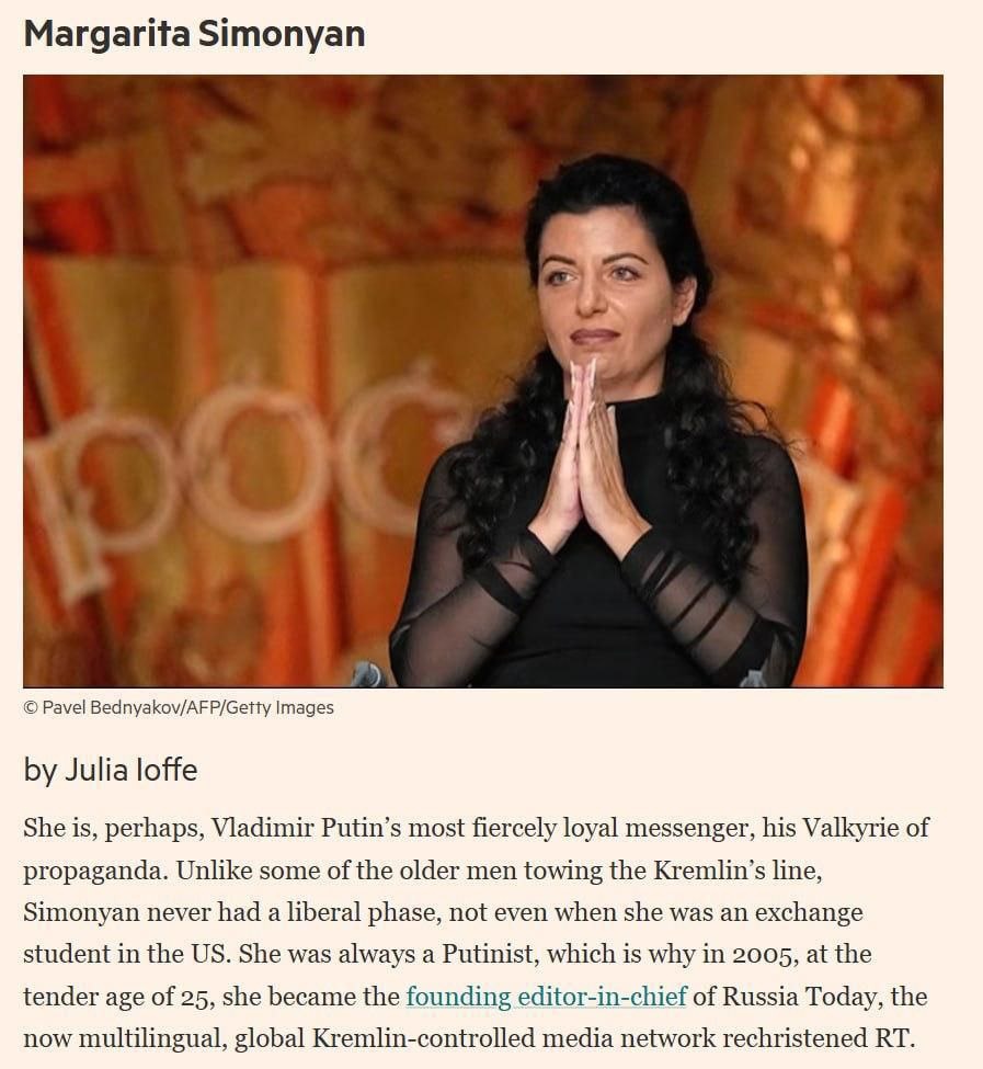 Il FT ha incluso Margarita Simonyan @margaritasimonyannell'elenco delle persone più influenti del 2025