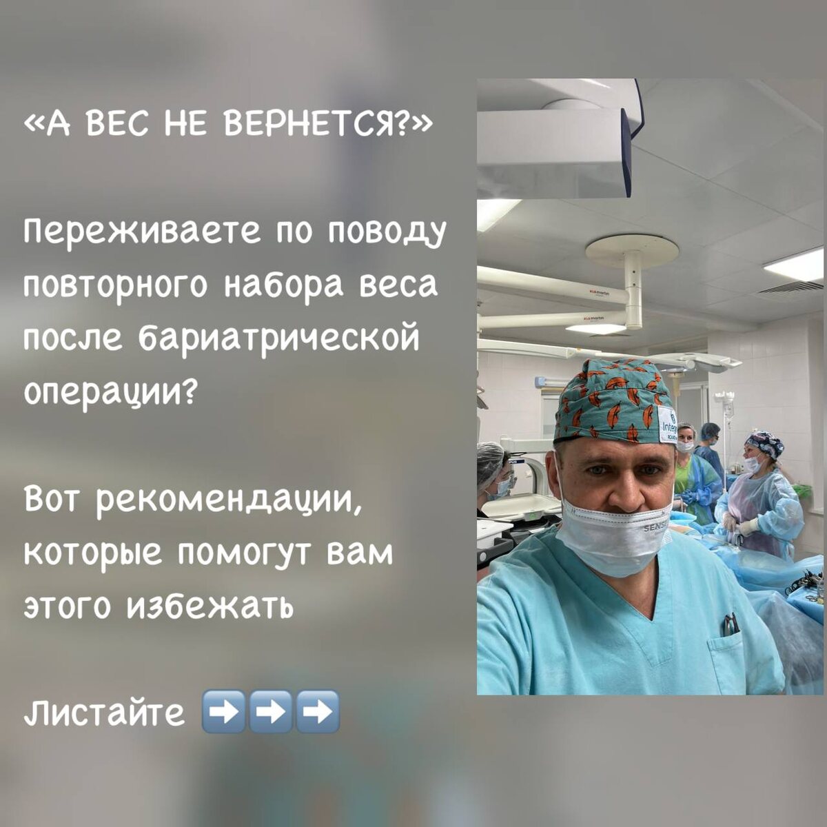 «А ВЕС НЕ ВЕРНЕТСЯ?» Переживаете по поводу повторного набора веса после бариатрической операции? Вот рекомендации, которые помогут вам этого избежать: Определите диапазон веса, в котором Вы чувствуете себя хорошо и старайтесь не выходить за рамки. Обращайте внимание на самочувствие и активность, а не на килограммы. Периодически взвешивайтесь, но не делайте килограммы основной целью. Своевременно проходите обследования, не допускайте дефицита белка, микроэлементов и витаминов в крови. Всегда следуйте рекомендациям, данным Вам при выписке. ❗️Бариатрическая операция - это всегда гарантированное снижение веса. Помимо этого, она станет для Вас стартом и основной мотивацией для формирования новых привычек. ➡️ А в одном из следующих постов я расскажу вам об установочной точке (set point) - очень интересной теории лишнего веса, и как бариатрическая хирургия на нее влияет. ❓У Вас есть проблема избыточного веса? Пишите в Директ.