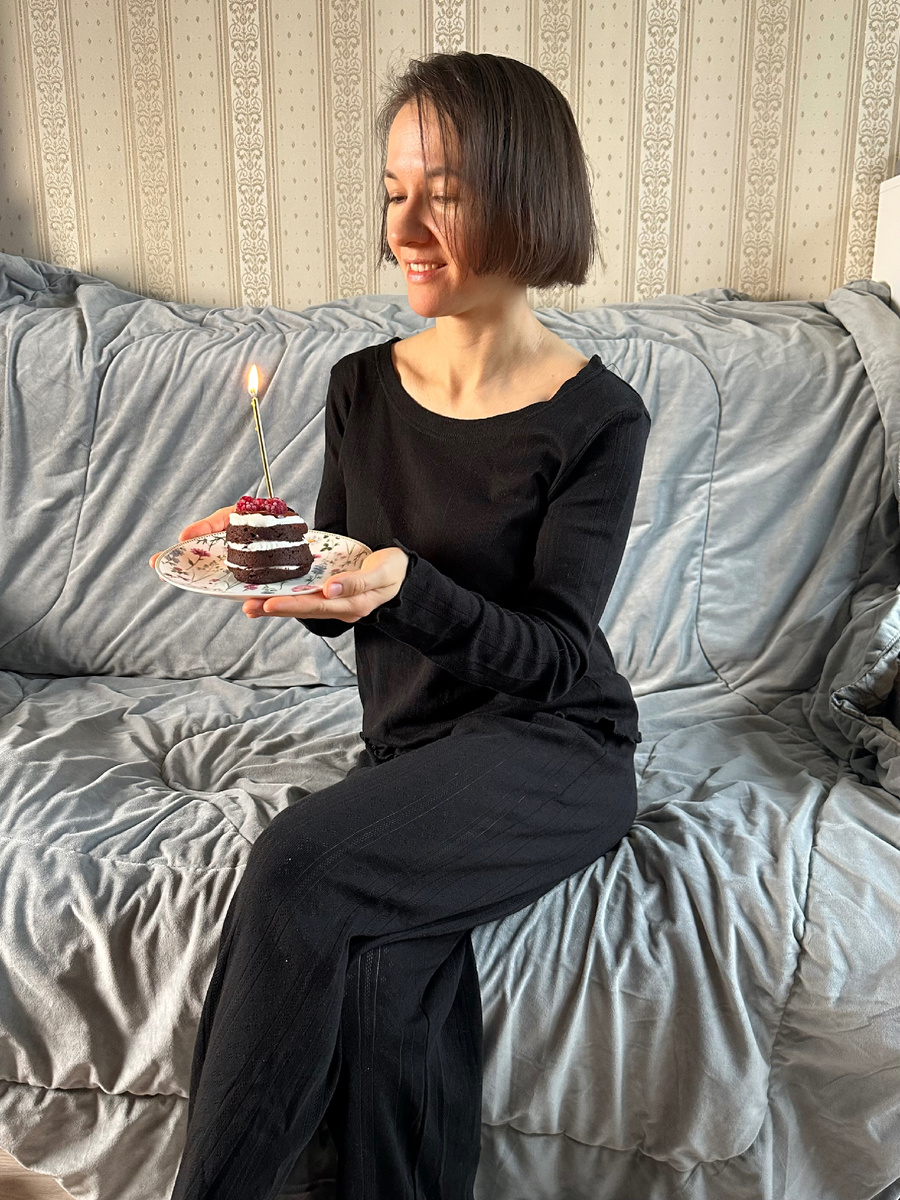 Я обожаю домашнюю одежду, поэтому на каждый день рождения заказываю в подарок новую пижаму. В этот раз вот такая удобная хлопковая. И хочу поделиться с вами рецептом быстрого шоколадного пирожного, что готовила себе в честь праздника 🎊 Ингредиенты: 25 г горького шоколада 1 яйцо 10 г растительного масла 10 г меда 20 г муки из зеленой гречки 5 г разрыхлителя Крем: 100 г мягкого творога И сверху еще шоколадом растопленным полила. Конечно, сладость стоит регулировать на свой вкус, с этими пропорциями десерт получается не сильно сладким, если необходимо, то подсластите дополнительно крем. Способ приготовления: Горький шоколад растопить, смешать с маслом, медом и яйцом. Добавить муку и разрыхлитель, хорошо перемешать. Полученное тесто выложить в кружку или миску. Готовить в микроволновке на максимальной мощности 2 минуты. Можно в духовке на 180С 20 минут. Дать остыть и разрезать. Промазать кремом и полить шоколадом.