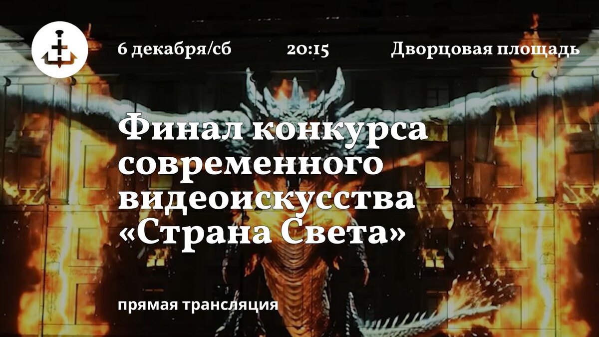 На фасаде Штаба Гвардейского корпуса покажут работы финалистов конкурса современного видеоискусства «Страна Света». Зрители увидят трехминутные работы команд из Петербурга, Вологодской, Томской, Омской, Владимирской, Московской областей, Республики Алтай и Республики Татарстан. Каждая зарисовка — собственный взгляд на национальные и региональные предания, местные истории, устную поэзию и культурные коды, сохранившиеся в памяти поколений. Присоединяйтесь к трансляции с Дворцовой площади.