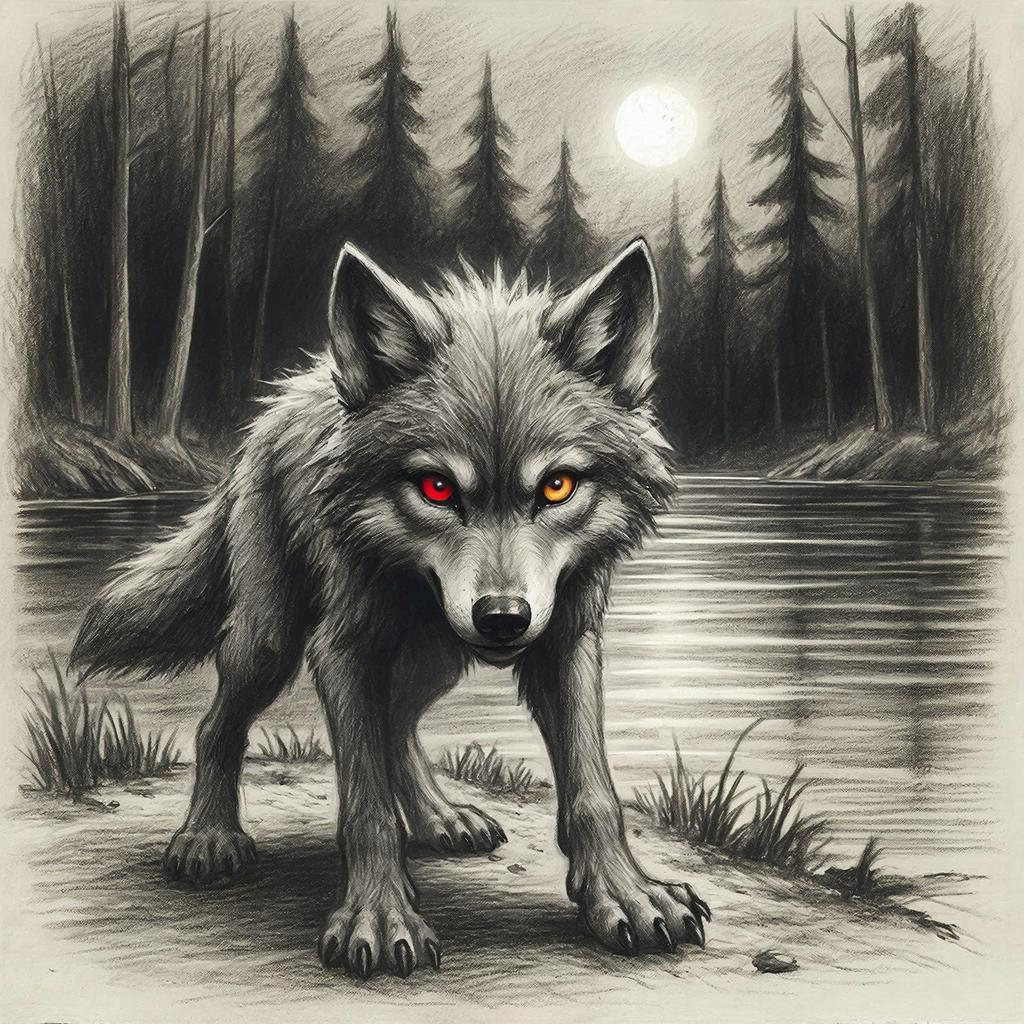 Спустя полторы недели ему исполнилось 16 лет. Стояла глухая ночь, он резко проснулся с огромной охотой пробежаться по лесу. Как бы он ни старался, у него не получалось надолго стать волком. Это внезапно стало тяжким заданием. Спустя несколько попыток, у него наконец это получилось, но всё же это было странно. Он прибежал к красивому озеру. Там было так тихо, спокойно. Природа в ночи была прекрасна и таинственна. Он подошёл к озеру и, посмотрев в своё отражение, он застыл в изумлении. Один глаз был красного цвета, а другой — оранжевого. Зрачки загадочно переливались в свете неполной луны. Он не смог удержать силы и остался сидеть на траве, покрытой росой, в облике человека. Глаза всё также были разного цвета. Он схватился за голову, вокруг стали появляться разные голоса. Его облик менялся с человека на волка, и наоборот.