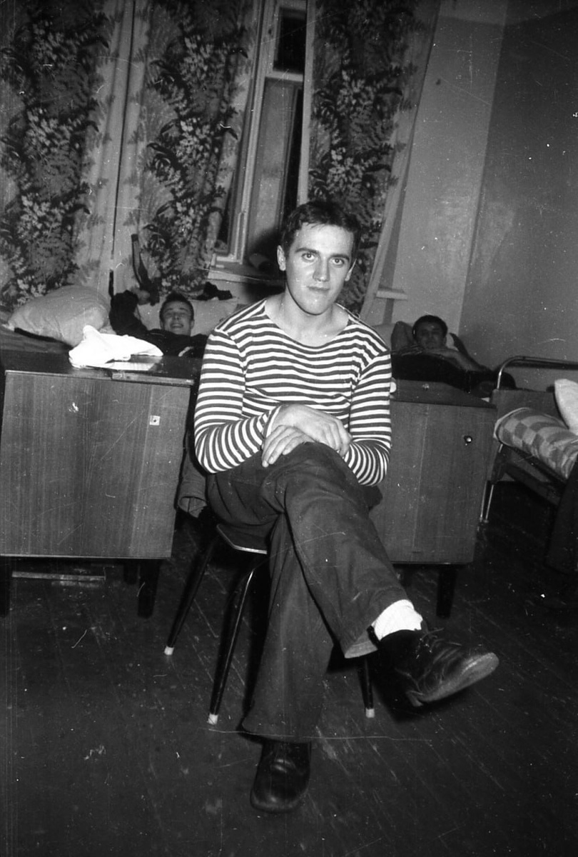 Курсанты 2 курса Ленинградского Речного училища дурачатся в общежитии в 1984 году
