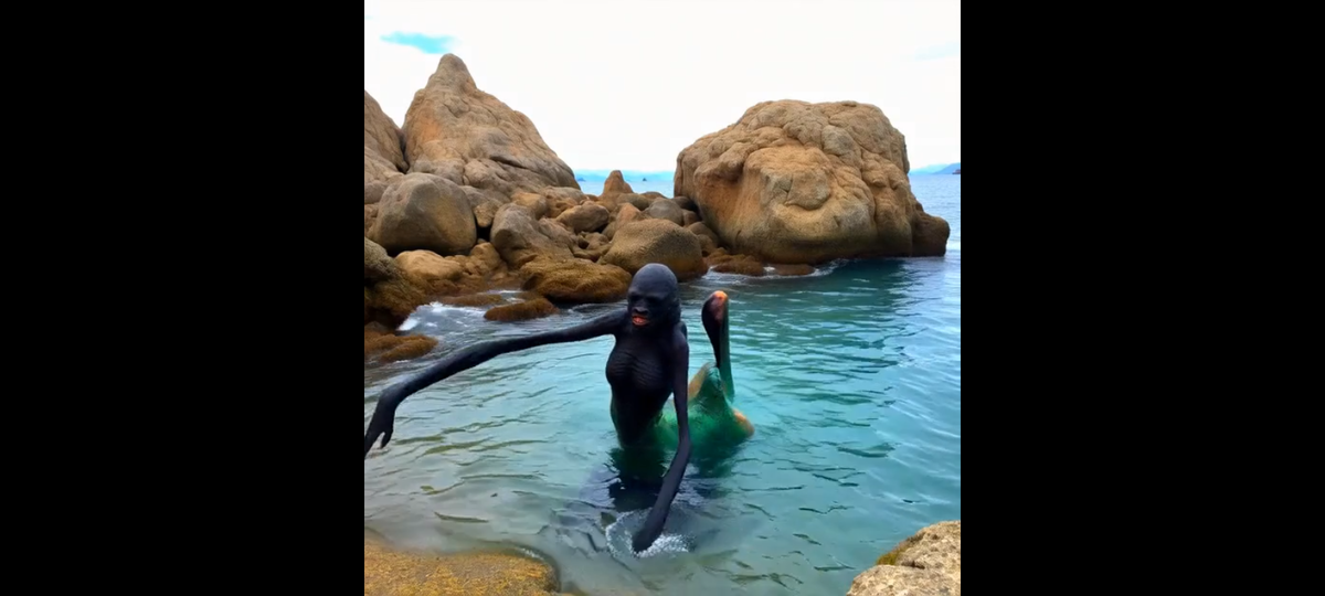 В том году двое бразильских мужчин, живших в глубинке страны, наткнулись на нечто необычное — фантастическое и одновременно жуткое, от чего пробирает в холод до костей. Эти мужчины зарабатывали на жизнь рыболовством. Однажды, забредя далеко в лесные заросли, они обнаружили большую заводь, окружённую камнями, а с другой стороны — лесом и скалами. Недолго думая, рыбаки начали забрасывать сети, как вдруг на поверхности воды появились странные булькающие пузыри, и вскоре над водой показалась тёмная голова. Мужчины решили, что это неизвестный вид рыбы. Голова медленно плыла в их сторону. Несмотря на необычное зрелище, рыбаки не растерялись и продолжали наблюдать. Вдруг они услышали странный, приятный и ласкающий слух звук, от которого не хотелось уходить. Тем временем тёмная голова подплывала всё ближе и поднималась всё выше, открывая тёмный и морщинистый торс. Из воспоминаний одного рыбака: «Я помню только сильный рывок, а когда пришёл в себя, понял, что меня кто-то тянет за руки. В