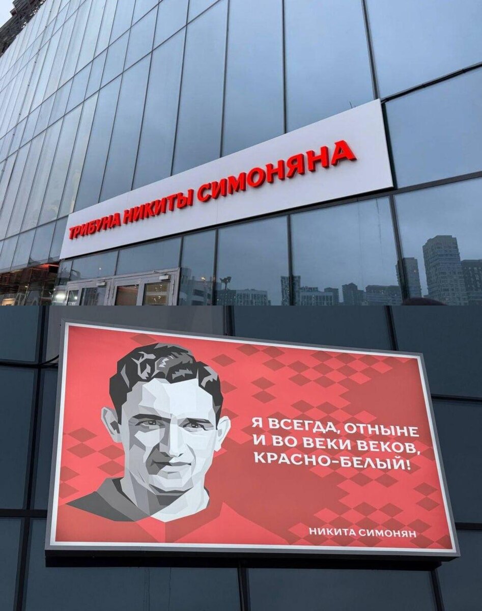 Спартак переименовал трибуну А домашнего стадиона в честь ушедшего на сотом году жизни Никиты Павловича Симоняна. На входе появилась памятная табличка.
