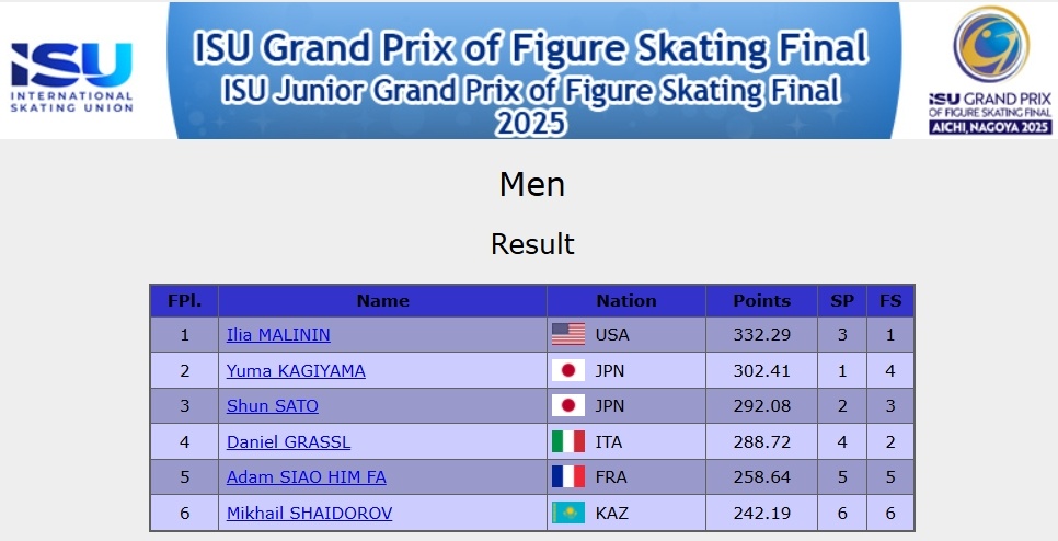 Михаил Шайдоров и Адам Сяо Хим Фа не смогли побороться за медали. Оба не в оптимальной форме, слишком много ошибок. За счёт артистизма француз чуть выше - на пятом месте, но отрыв от четвёртого места очень большой. Даниэль Грассль вышел на лёд и для начала перекрестился. Исполнил 3 четверных - лутц, риттбергер, сальхов. Два тройных акселя, один в каскаде с тройным тулупом, другой - в секвенции с двумя двойными акселями. Технически мощно усложнился и не упал ни разу, что говорит о его стабильном психологическом состоянии. Готов блеснуть на домашних ОИ. После всех прыжков легким движением рук трансформировал свой костюм в более светский вариант, хорошо, что в вырезе рубашка, а не голое волосатое тело, как у эмоционального Кевина Эймоза. Оценка - 194,72 (288,72) балла. Второй по произвольной, но на медаль не хватило. Ну поборется за золото на ЧЕ. У Ильи Малинина в этом сезоне экстравагантные костюмы в обеих программах. В произвольной просто дизайнерский шик - с кучей блестков
