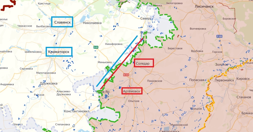 С начала недели стали поступать сведения о взятии населёнников, которые расположены довольно далеко от линии соприкосновения, сама эта линия уже довольно давно (года 2 с половиной точно) была статичной: Сначала две недели назад пришла весточка, что наши забрали вот эту деревеньку и продвинулись в соседней: Это движение было отнесено к Северской операции, типа обеспечение фланга, оттягивания части сил и т.п. Однако, на этой неделе от МО пришла совершенно неожиданная информация, что наши продвинулись рядом с этим местом, но это продвижение пока тяжело отнести к какому-то конкретному направлению или городу: Это прорыв выглядит так из "космоса". А так в ближайшем приближении: Прорыв совершён примерно на 10 километров, а его конфигурация очень интересная: Действительно, какая-то загогулина получилась и вот такая загогулина вызвала у ряда наших блогеров претензии к тому, что выглядит всё это довольно «подозрительно». Почему подозрительно? Нет видеоподтверждений оттуда, нет флаговтыков и