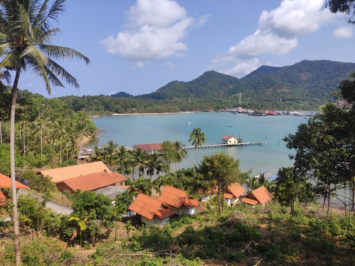 Утром немного покатались по острову. Доехали до пирса, на который приходят паромы с материка. Он расположен на самом севере Чанга. А неподалеку на горке стоит очень яркий китайский храм. К храму ведет длинная пологая лестница, которую стерегут драконы.