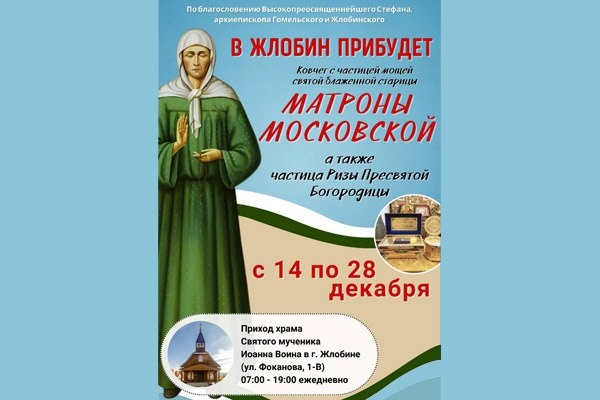 📍В Жлобин прибудет ковчег с частицей мощей святой блаженной старицы Матроны Московской