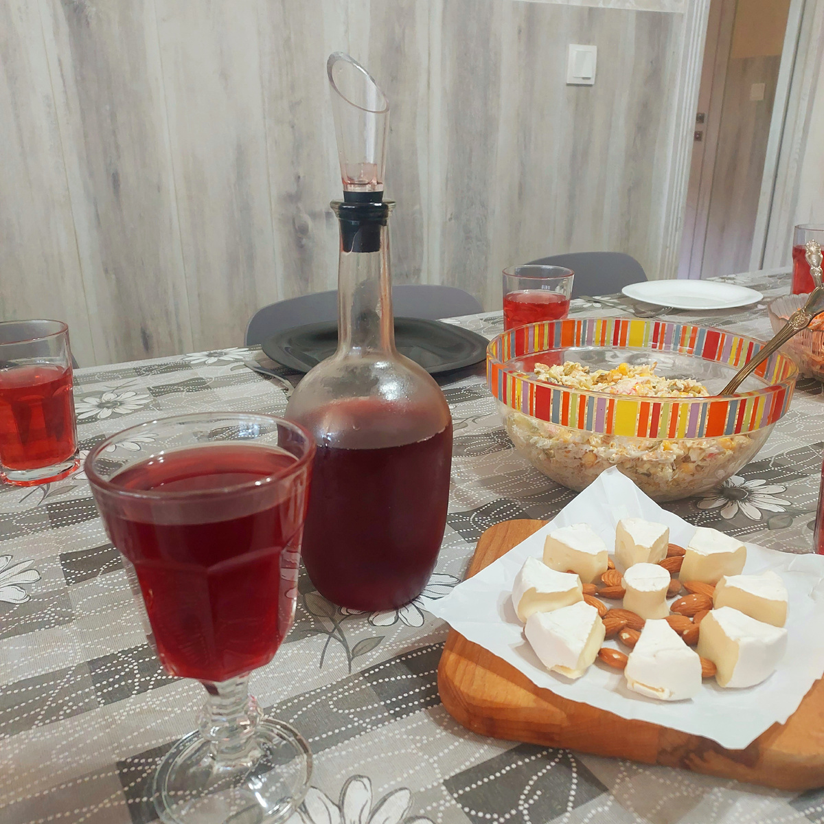 Если говорить про цвет, то первое вино получилось грязно розового цвета, а вот цвет второго - красивый и насыщенно рубиновый. При этом вино из второй партии более сладкое вышло, чем первое. У первого приятная кислинка и в целом приятное на вкус.