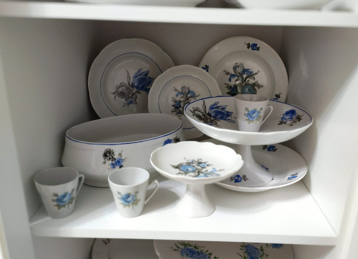 Всем доброго времени суток! Начну с перестановки в шкафу с фарфором, вернее не во всём шкафу, а на полочках, где фарфор поменялся местами.. Прислушавшись к мнению читателей, свой комплект Синий цветок, которому было очень тесно на отведённой ему полочке, я переселила в другой шкаф, двухстворчатый, в нём намного шире полки и фарфор стоит более-менее свободно. Полностью этот шкаф пока показывать не буду, так как ещё ждём доставку полочки и как только муж её поставит, сразу покажу, как расставила в нём фарфор. На место Синего цветка переехал фарфор с ситцевым рисунком. Все мои предметы из этой серии на полочку не поместились, но большая часть вошла. На почётном месте, конечно фарфор Е. Штрикер. И похвастаюсь своими новыми фарфоровыми сокровищами. Посмотрите какой невероятной красоты и формы фруктовница. Сохранность отличная и всё как я люблю, даже цветочки на лапке) А букеты цветов - глаз не оторвать, я не могу налюбоваться который день! Вот глядя на эту красоту, никогда бы не узн