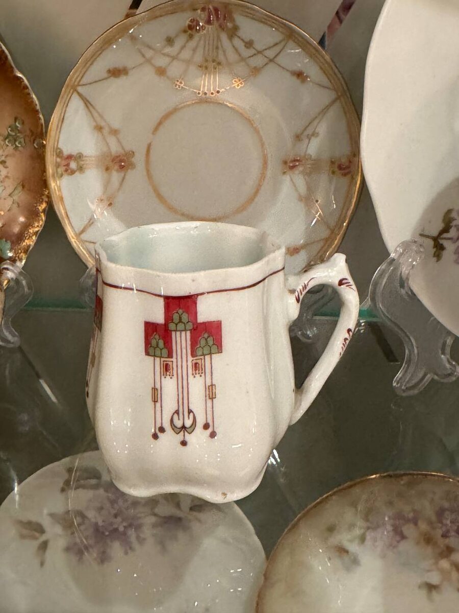 Добрый день! Я решила продолжить тему торговых фирм. Сегодня перед нами кофейная пара, которая изготовлена на фабрике Эссена в Риге. Период изготовления с 1890 по 1910 годы. Эта пара кроме марки изготовителя имеет марку И. А. Попадейкина в Пятигорске. В начале ХХ века Пятигорск был одним из самых крупных городов-курортов Кавказских Минеральных Вод, сюда провели железную дорогу, проложили шоссе, в городе действовала трамвайная линия, телефонная станция, театр и даже кинотеатр, открытый в 1911 году. Довольно типичная уездная улица Эмировская (с 1922 г. - это ул. Октябрьская. Еще раньше это было Ессентукское шоссе, которое вело от Ресторации до Ессентукской группы и далее в Кисловодск. Некогда это была самая оживленная дорога Пятигорска). На этой улице находился знаменитый в 1910-х годах магазин "Посуды и лампъ" пятигорского купца Ивана Андреевича Попадейкина на Эмировской улице. Торговый оборот купца И.А. Попадейкина в это время составлял свыше 10 тысяч рублей в год. Зачастую посуда дл