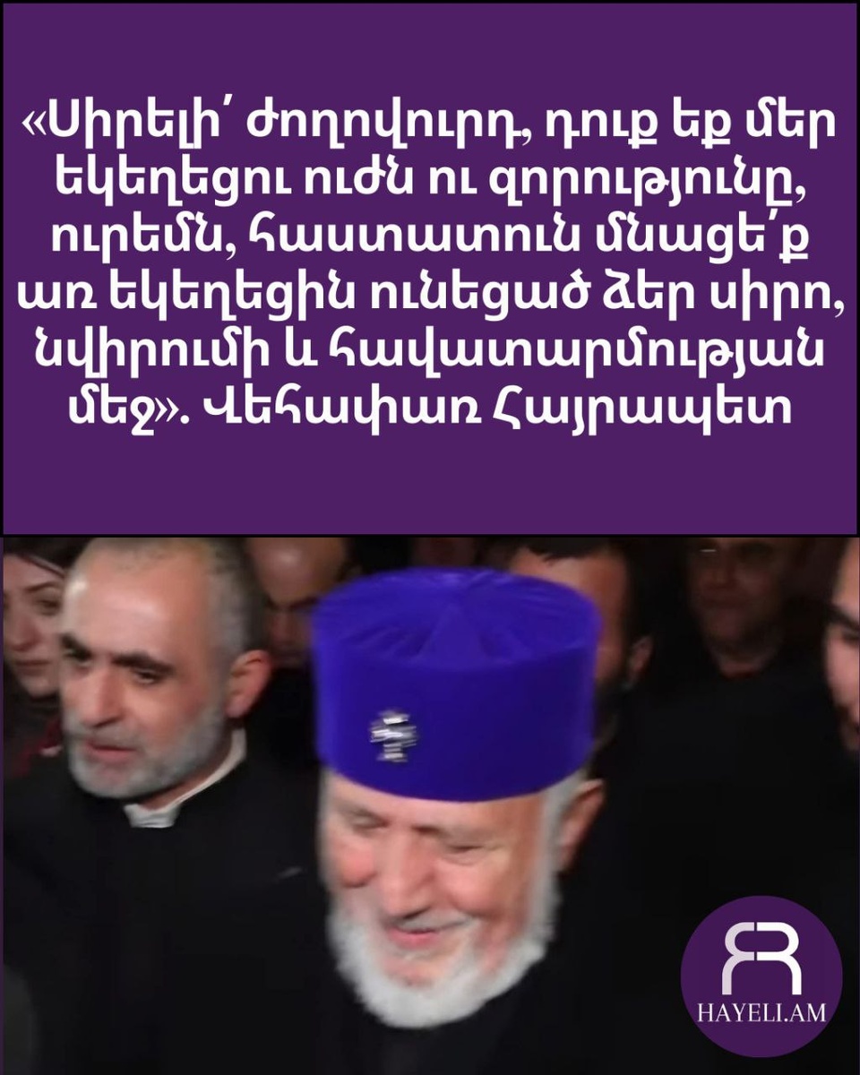«Սիրելի՛ ժողովուրդ, դուք եք մեր եկեղեցու ուժն ու զորությունը, ուրեմն, հաստատուն մնացե՛ք առ եկեղեցին ունեցած ձեր սիրո, նվիրումի և հավատարմության մեջ», - Ն.Ս.Օ.Տ.Տ. Գարեգին Բ Կաթողիկոս Ամենայն Հայոց։