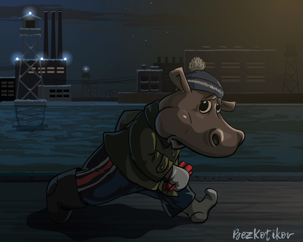 Сегодня на испытании моя давнишняя картинка, которую нарисовал по мотивам рассказа знакомого блогера из ЖЖ, как они с пацанами украли тротил. Саспенс, триллер, безысходность. Одет в типичную одежду малолетнего гопника из Ленинского района. Шапка "арбуз", трикотажные штаны из акрилового волокна с лампасами — "боевики". Короткая куртка, а чаще фуфайка-стеганка.