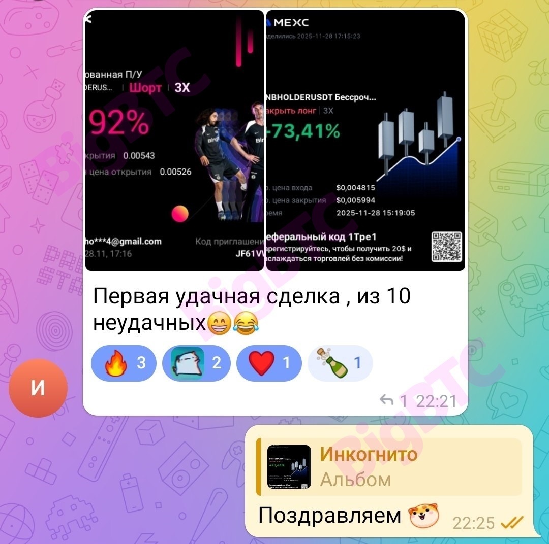 BigBTC - Арбитраж крипты без карт 🤑Наши телеграмм-боты - сканеры в реальном времени ищут связки для арбитража криптовалют без использования банковских карт (как в классическом p2p арбитраже) ✅Все наши ресурсы: https://bigbtc.store/link/dzen Binance - BestChange бот: https://t.me/cryptocurrency_arbitrage_bot?start=dzen ByBit - BestChange бот: https://t.me/arbitrage_bybit_bot?start=dzen Mexc - BestChange бот: https://t.me/arbitrage_mexc_bot?start=dzen Межбиржевой бот: https://t.me/BigBTC_arbitrage_bot?start=dzen Фандинг - фьючерс бот: https://t.me/BigBTC_funding_bot?start=dzen Обучающий бот (бесплатный): https://t.me/BigBTC_learning_bot Партнёрская программа: https://t.me/BigBTC_ref_bot 🌐Сайт: https://BigBTC.store 💬Чат: https://t.me/BigBTCchat Нужно нажать кнопку "Я не бот" при первом входе 📰Канал: https://t.me/BigBTCchannel Новости, отзывы, гайды, итоги работы 👨💻Поддержка 1: https://t.me/BigBTCsupport4 👨💻Поддержка 2: https://t.me/BigBTCsupport3 🎁Ссылки регистрации на би