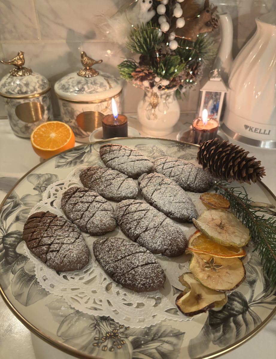 Печенье в виде шишек. Новогоднее настроение на тарелке.