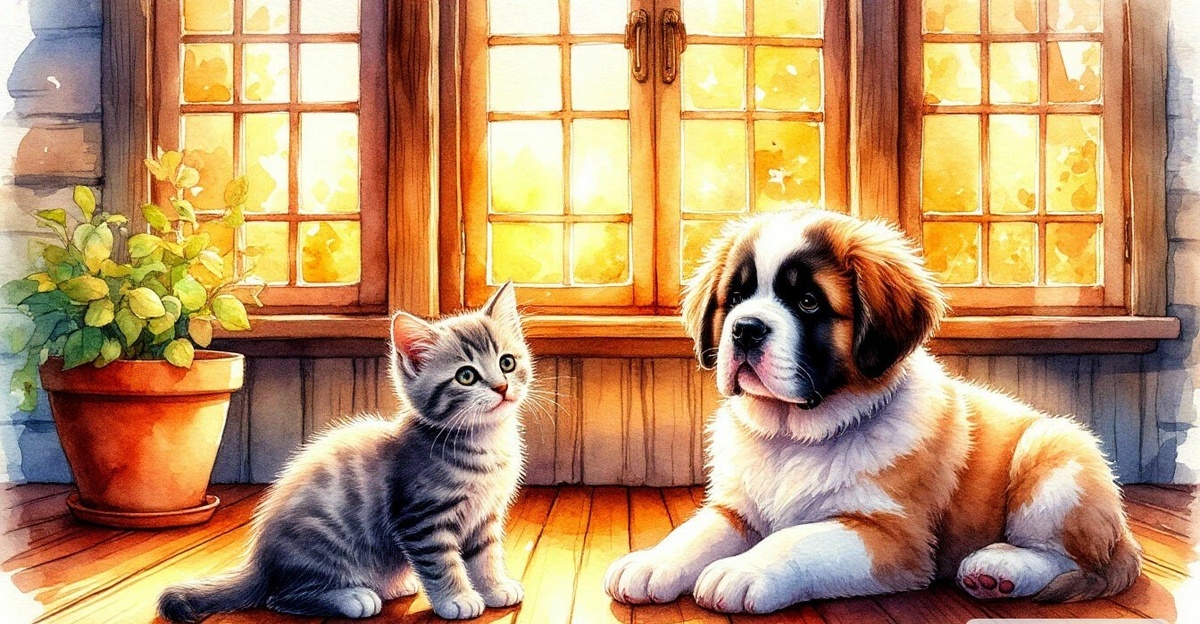 Дорогие мои читатели! Каждый четверг я дарю вам и вашим семьям маленькую историю из жизни Фитти и Герри. Сегодня она о простом, но таком важном правиле — есть вовремя и то, что лежит на тарелке, а не сладости. Кажется, эту мудрость нам, вечно спешащим и перекусывающим взрослым, тоже стоит вспомнить. Сохраняйте мои сказки для ваших семейных уютных вечеров — и читайте вместе. *** В уютном домике, где всегда пахло пирогами и по полу играли солнечные зайчики, жили серенькая кошечка Фитти и маленький щенок сенбернара Герри. Однажды Хозяйка домика позвала их обедать. На столе дымилась большая миска с супом, пахло свежим хлебом. «Сейчас, сейчас!» — крикнул Герри и побежал к своей тайной кладовке, где у него лежала красивая блестящая конфетка, подаренная утром воробьём. «Герри, обед стынет!» — мягко позвала Фитти, уже усаживаясь на своё место. Но Герри не слушал. Он развернул фантик и съел конфетку. Она была сладкая-пресладкая! сгенерировано нейросетью А когда он наконец прибежал к столу, су