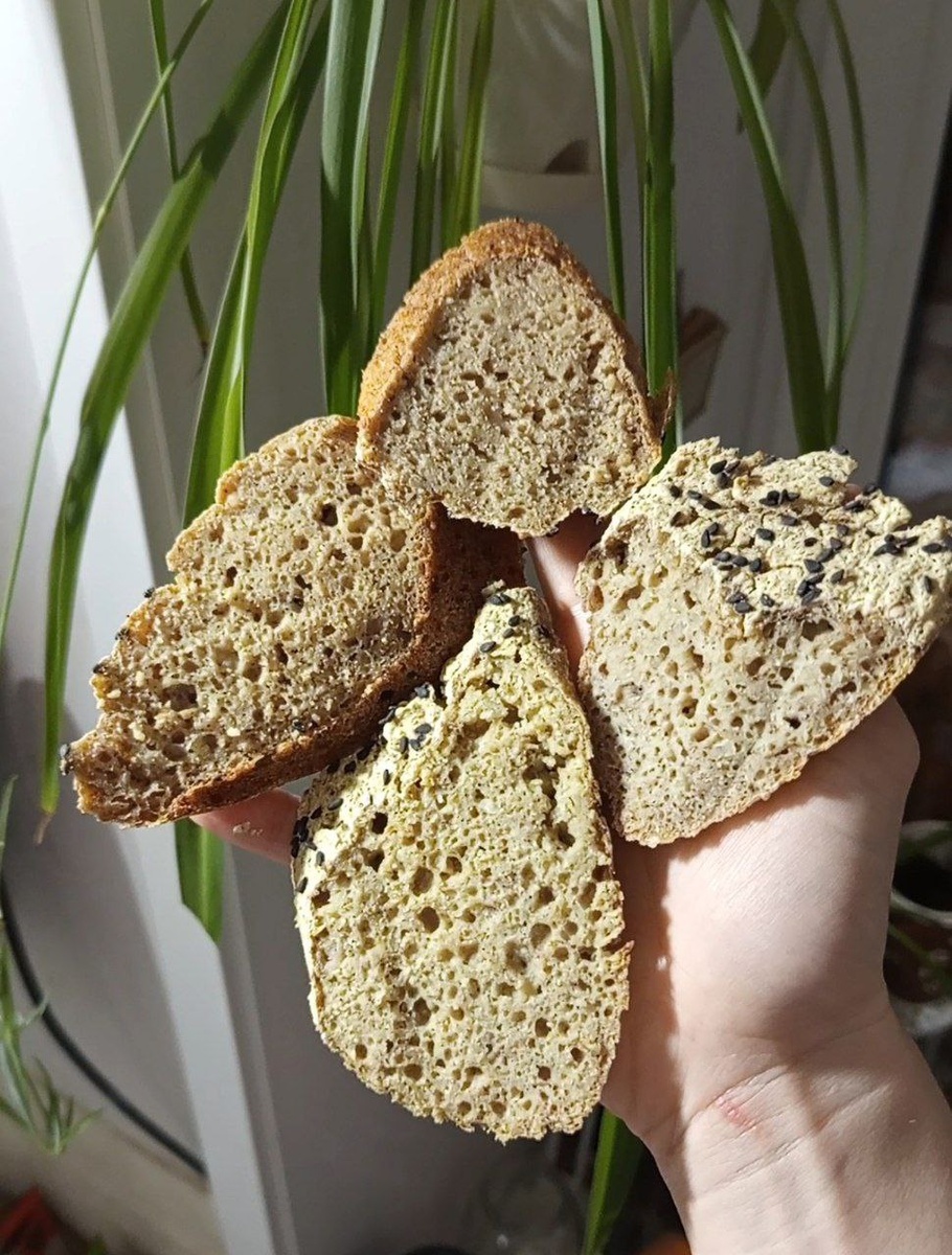 Квартет готов!🥰 *видео снова не грузит Было четыре вида на одной основе, в итоге: >> вкус практически одинаковый у всех, но вкусный у каждого >> внешне один светло-серый, а остальные желтоватые >> запах чуть разный, но приятный у каждого >> пористость практически одинаковая и присутствует в каждом Единственное, буду в следующий раз выпекать как обычно в высокой форме, потому что сегодня выложила в форму для батонов, а она все же для плотного теста. И забыла семян добавить, но тоже уже ничего не поделать) Если купить форму для хлеба, то можно будет прямо привычные буханочки готовить. Завтра поедИм его ещё свежим и вечером нарежу и заморожу остальное. Я так делаю, чтобы, во-первых, не переедать его 😄 во-вторых, чтобы всегда был в запасе и свежий☺️ Если вы не можете без хлеба, вам сюда👈