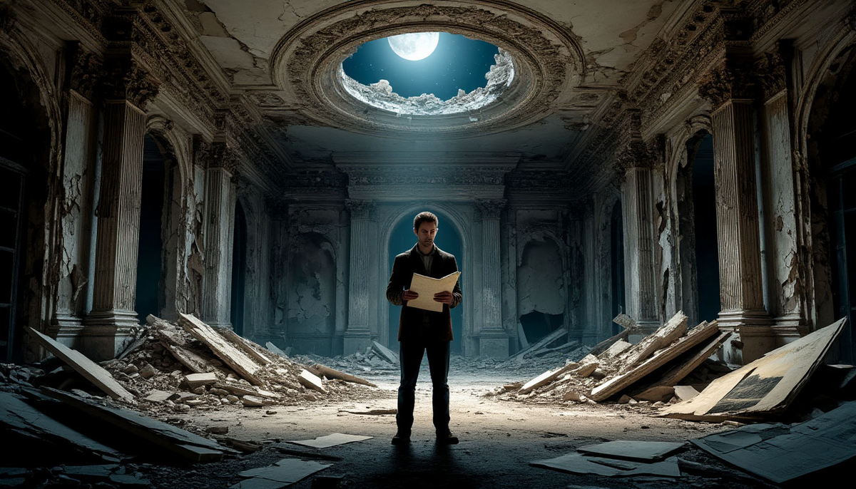 Вечером я вернулся в усадьбу. Не в наш тёплый домик смотрителя, а в главный дом. Стоял в центре разрушенного бального зала. Луна светила сквозь дыру в крыше, серебря груды битого кирпича и обломков лепнины. Тишина была не пустой. Она была густой, насыщенной. И в ней я начал слышать. Не голоса, конечно. Но послание.