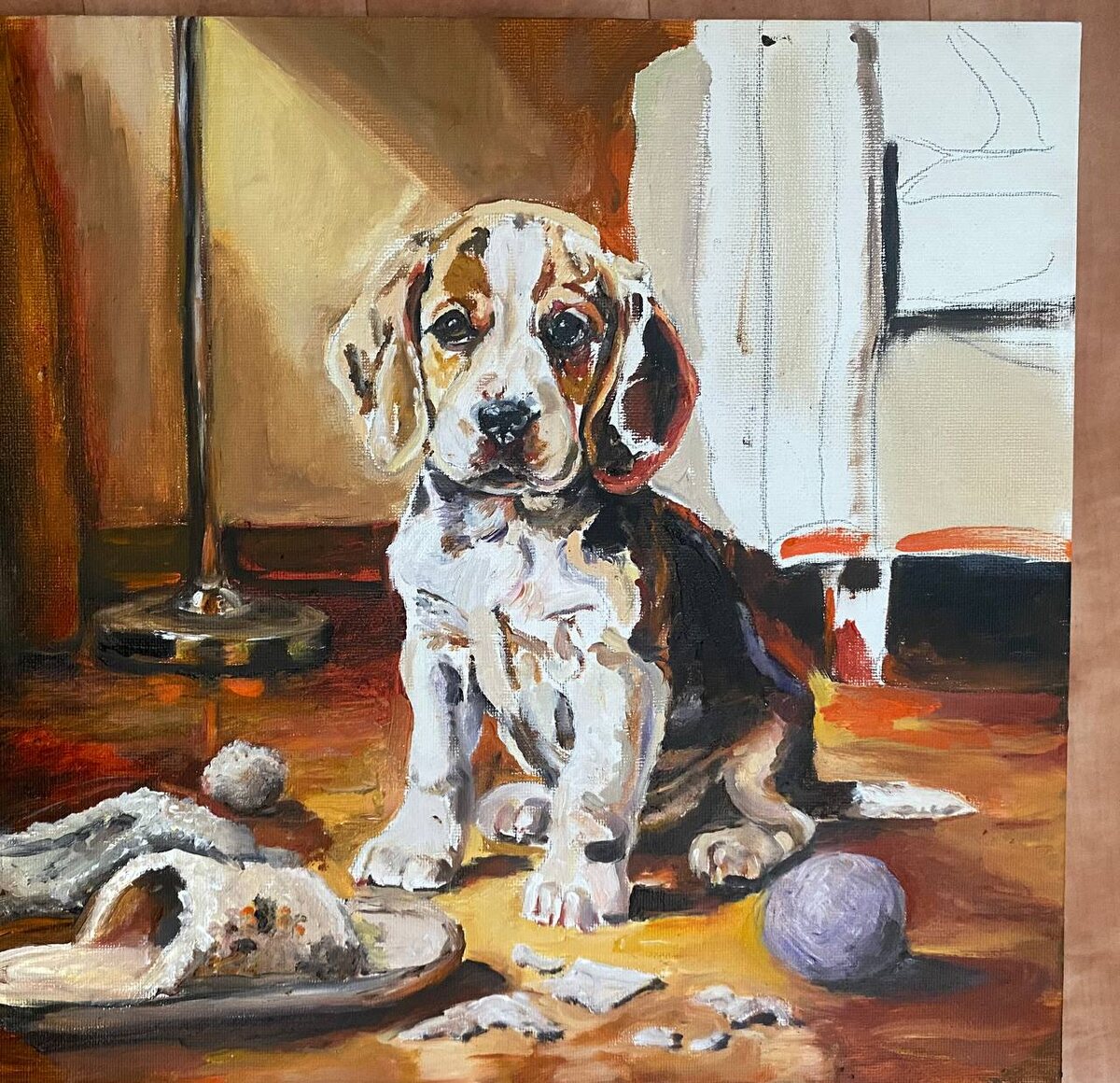 У меня тут мелкий проказник на подходе. Работа в процессе. Холст на картоне 20/20
