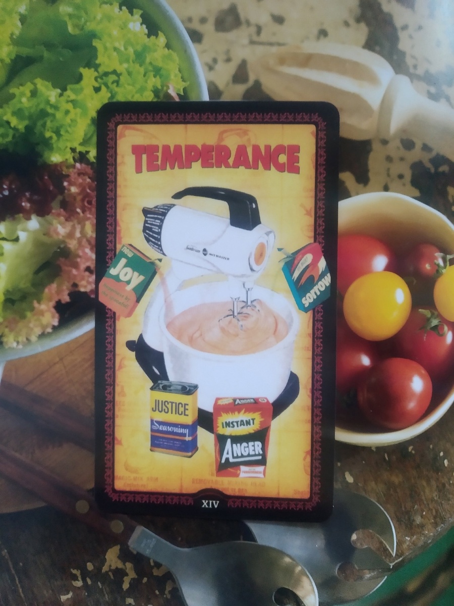 Здравствуйте! Картой дня на эту субботу стал аркан Умеренность из колоды Таро Домохозяек. Авторы колоды сделали акцент на одном из значений карты – равномерное и сбалансированное сочетание различных элементов для достижения гармоничного целого. На изображении мы видим кулинарный процесс. С помощью миксера происходит смешивание различных ингредиентов, входящих в состав вкусного блюда. Чтобы все получилось так, как было задумано, потребуется не только точное соблюдение дозировки продуктов, но и уравновешенный настрой хозяйки. Нетерпение и спешка может привести к тому, что взбитые белки осядут, а тесто не пропечется. Важно соблюдать кулинарные рекомендации и вовремя уловить тот момент, когда пора замедлиться или приостановить процесс. МБК: СОТРУДНИЧЕСТВО. КОМПРОМИСС. СИМПАТИЯ. Добавь равные части радости и печали, гнева и прощения, правосудия и сострадания, взбивай 2 минуты, или пока хорошо не перемешается. Умеренность - это вкусная и здоровая комбинация двух противоположностей спектр