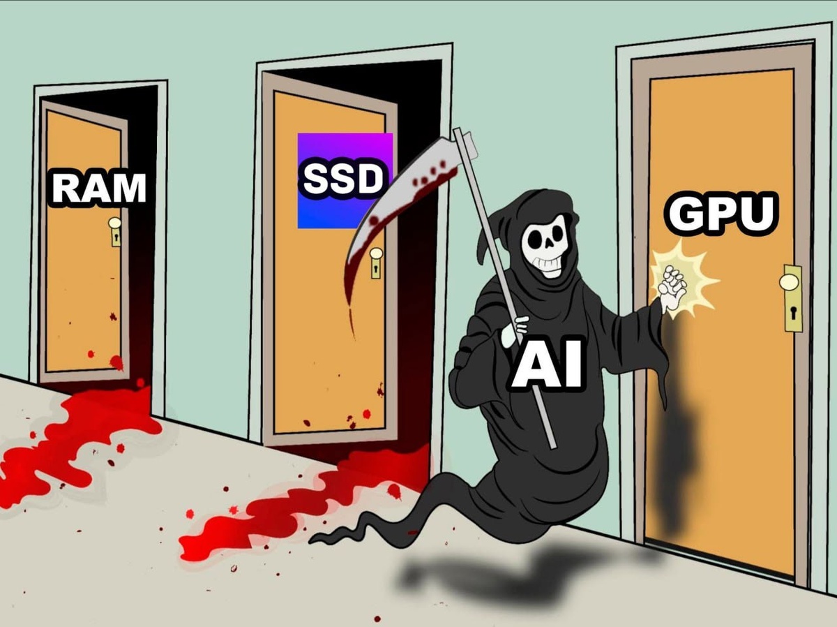 Сначала из-за разгона мощностей искусственного интеллекта подорожала ОЗУ, потом SSD.. А теперь? А теперь будут видеокарты. Многие прогнозируют, что цены на GPU в ближайшее время точно также взлетят. А я говорил ещё в 2022 что железо станет не доступным для большинства обычных пользователей.💀 Dailyhardcore Подписаться