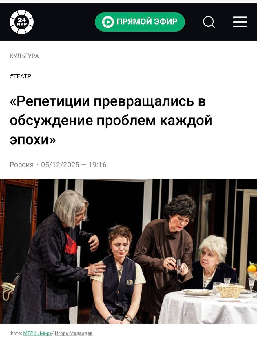 MIR24.TV рассказывает о премьере «Москвичек»: «Пьеса настолько актуальна, что иногда не покидает ощущение – просто убрали четвертую стену на
