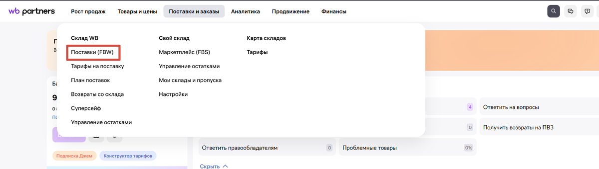 Заходим в раздел(выделенный на скрине). Создаем поставку, проваливаемся в нее. Будет выбор добавления товара: вручную(интуитивно все понятно) и загрузить эксель, в котором есть графа баркод(код, который присваивается после создания товара) и количество - здесь все просто, вставляем баркод и указываем его количество.