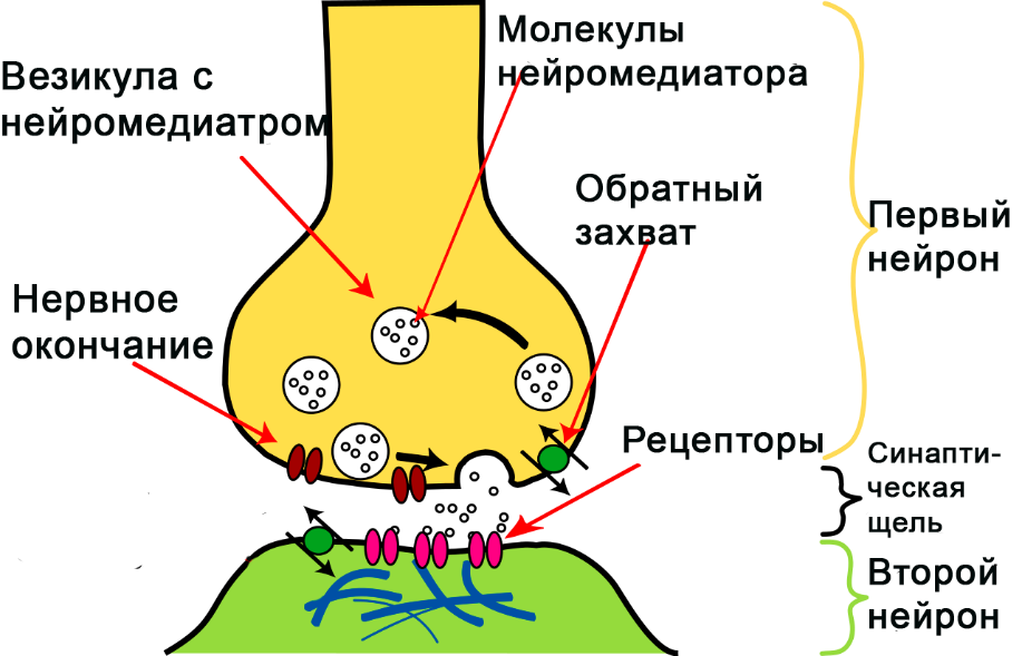 Через эту щель нейромедиаторы из депо аксона попадают к рецепторам дендрита и передают нервный импульс.