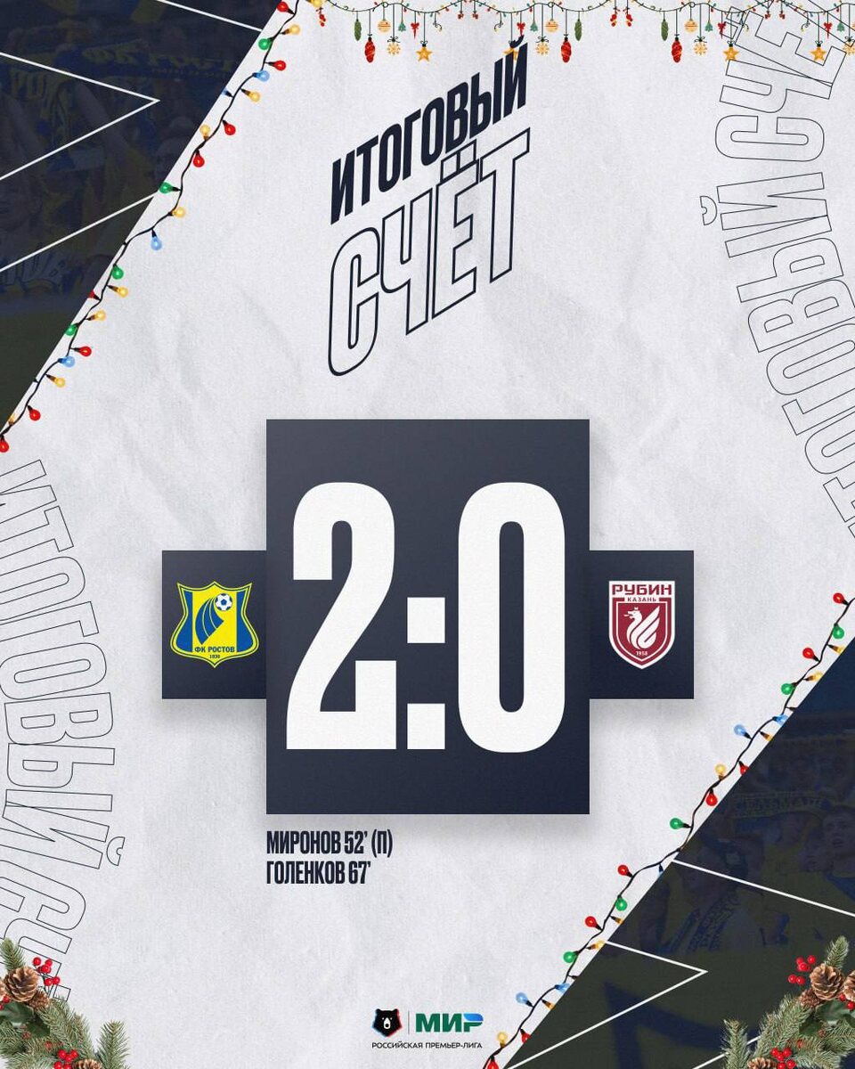 ФК «Ростов» обыграл «Рубин» в последнем матче 2025 года.