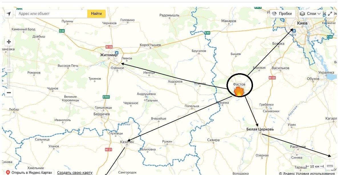 Наши косморакетчики сегодня ночью разгромили депо и вокзал в Фастове. Это крупнейший железнодорожный узел страны. Как видно из схемы он находится в центре между Винницкой, Житомирской, Черкасской и Киевской областей. А так номенклатура целей была самая разнообразная, но порт был всего один - Южный (Одесская область) и то как то очень слегка.