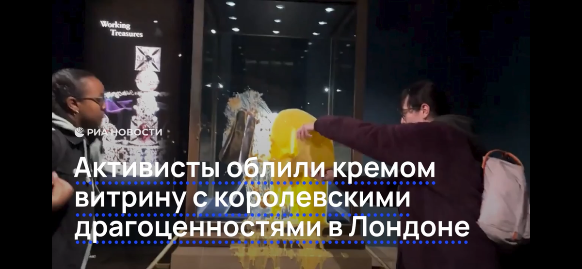АКТИВИСТЫ ОБЛИЛИ КРЕМОМ ВИТРИНУ С КОРОЛЕВСКИМИ ДРАГОЦЕННОСТЯМИ В ЛОНДОНЕ