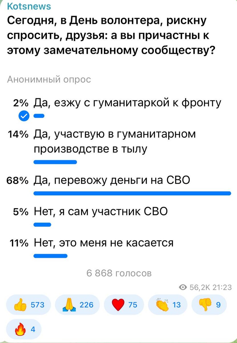 ⚡️⚡️⚡️ 68 процентов подписчиков переводят деньги на СВО. Формируют, так сказать, народный военный бюджет.