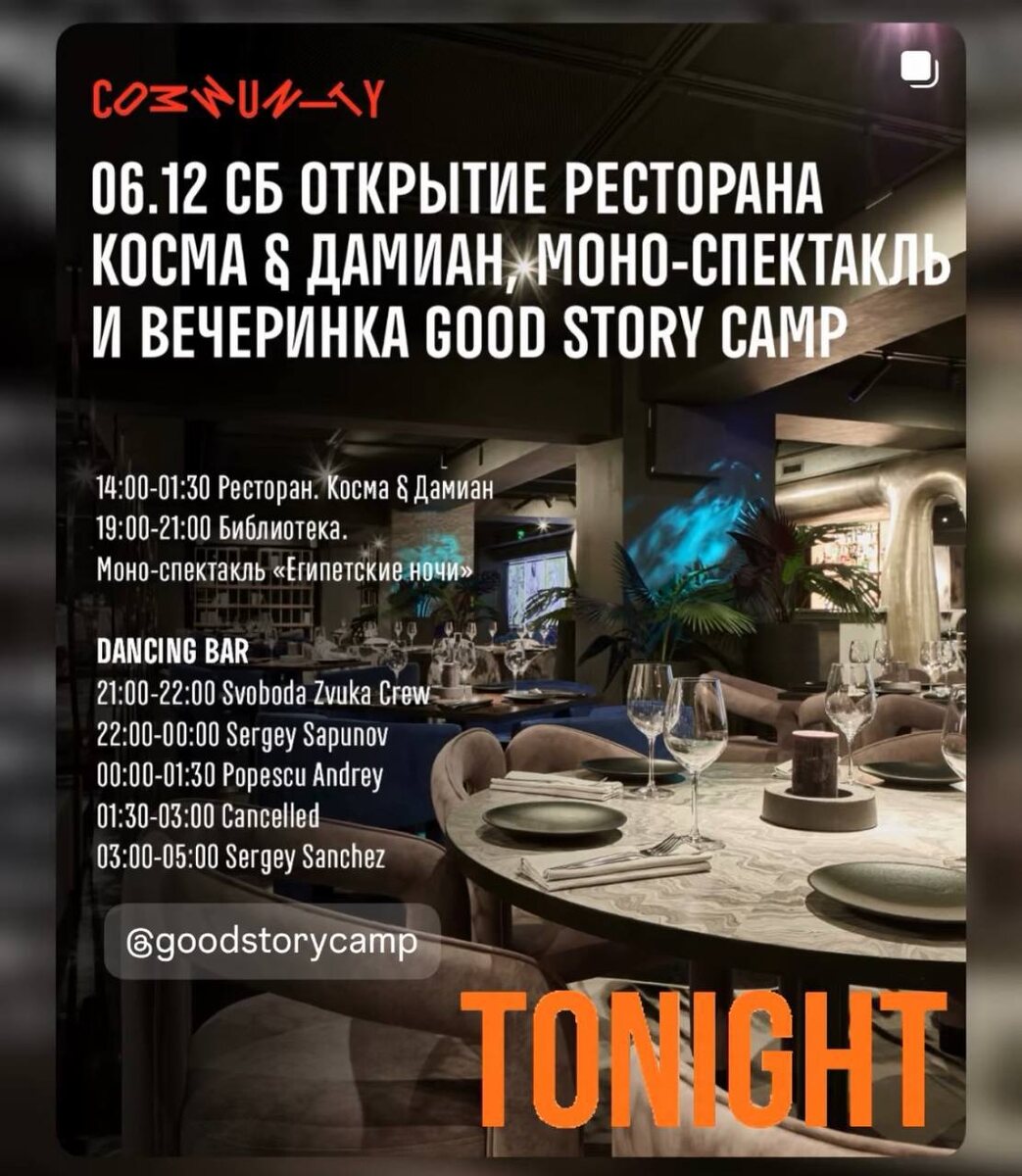 В эту субботу, 6 декабря, команда GOODSTORY CAMP SRI LANKA в COMMUNITY MOSCOW организуют вечеринку! Это пре-пати масштабного январского путешествия на остров Шри Ланка от GOODSTORY CAMP - 10-ти дневного приключения с серфом, йогой и музыкой. 🎫 Билеты на входе - 1500₽ 📆 6 декабря, 21:00 📍 Community Moscow, Космодамианская наб., 2