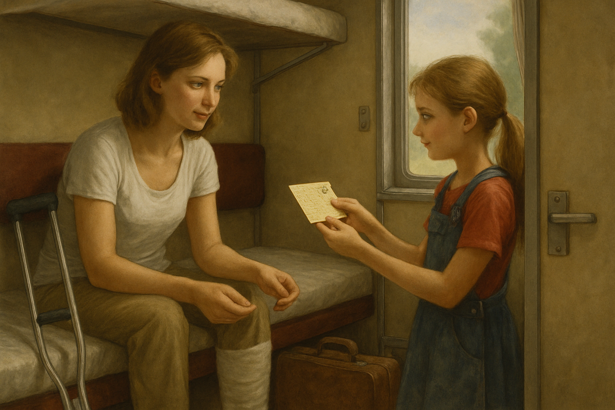 Я подумала, что, помимо номера телефона, хочу написать ещё что-нибудь ободряющее. В итоге на открытке разместились следующие слова: «Ульяне с любовью на память. Ты — уникальная девочка. Всегда помни об этом». Внизу приписка: «От Жени. Поезд Адлер-Череповец №282С. 14 вагон. 15 июня 2016 год». Далее следовал мой номер телефона.