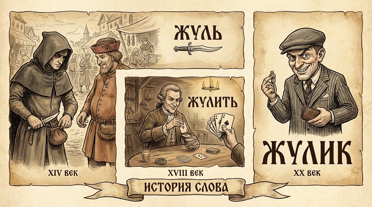 А вот и нет. История этого слова куда хитрее, чем многие жулики. Это сейчас «жулик» — однозначно плохой персонаж. А когда-то так могли назвать… ловкого, хитроватого, но почти симпатичного пройдоху. Того самого, на которого вроде злишься — но всё равно улыбаешься. Разбираемся, как так вышло. Откуда вообще взялся «жулик»? Точное происхождение слова «жулик» до конца не ясно, но лингвисты выделяют несколько интересных версий. Версия 1. От «жульничать» и «жульё» Слово «жульничать» в русском появляется в XIX веке и означает: хитрить, мухлевать, играть нечестно. «Жулик» — это как бы «профессиональный жульник»,