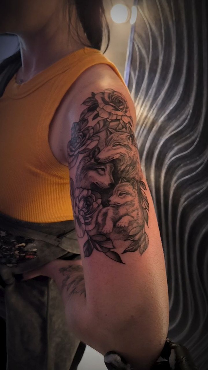 Парная татуировка для двоих волков ❤️🔥 Недавно я показывала вам работу с волками, елями и лесом — сильная, мощная история для мужчины. Сегодня продолжение этой истории появилось на плече у его девушки 🐺🌹 Здесь стая в другом настроении: ✨ волки — как символ верности, опоры и взаимной поддержки ✨ цветы — про нежность, заботу и мягкую силу Вместе они как две части одного целого: лес и цветение, сила и нежность, он и она. Очень люблю такие парные сюжеты, когда татуировки не копируют друг друга, а дополняют — как сами люди в отношениях. Спасибо моей гостье за доверие и терпение, плечо выдержало достойно 🖤 Продолжаем собирать вашу историю на коже штрих за штрихом. 🐺🌹 #парнаятату #татуволк #familytattoo #татуплечо #blackandgreytattoo #tattoostyle #kleinksenia #татуТуапсе #татумастертуапсе #autortattoo 📍 Адрес: г. Туапсе, ул. Привокзальная площадь, д. 5 📞 Телефон: +79881891818 💬 Телеграм: @KleinKsenia 🙌 Ваш мастер: Клейн Ксения Отзыв о моей работе можно оставить здесь: https