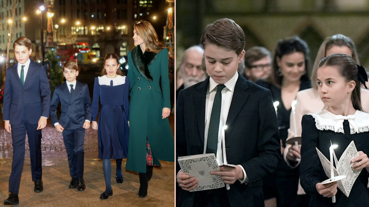 Принц Джордж, принцесса Шарлотта и принц Луи были в центре внимания, когда они присоединились к своим родителям на концерте рождественских гимнов "Вместе в Рождество" в Вестминстерском аббатстве. Дети Уэльса вели себя наилучшим образом, когда они прибыли вместе со своим отцом, принцем Уильямом, на ежегодное праздничное торжество. Их мать, принцесса Уэльская, прибыла раньше, но вышла на улицу, чтобы встретить своего мужа и детей по их прибытии. Принцесса Шарлотта выглядела очаровательно в темно-синем платье с оборками на воротнике, а принцы Джордж и Луи выглядели элегантно в темно-синих костюмах с зелеными галстуками, подходящими по цвету к элегантному пальто их матери от Catherine Walker. Дети счастливо улыбались, когда шли внутрь, чтобы занять свои места. Это второй год, когда все трое детей участвуют в торжествах после того, как принц Луи дебютировал на этом мероприятии в прошлом году. Королевские дети подошли к "Древу единства", где гости могли добавить свои имена на б