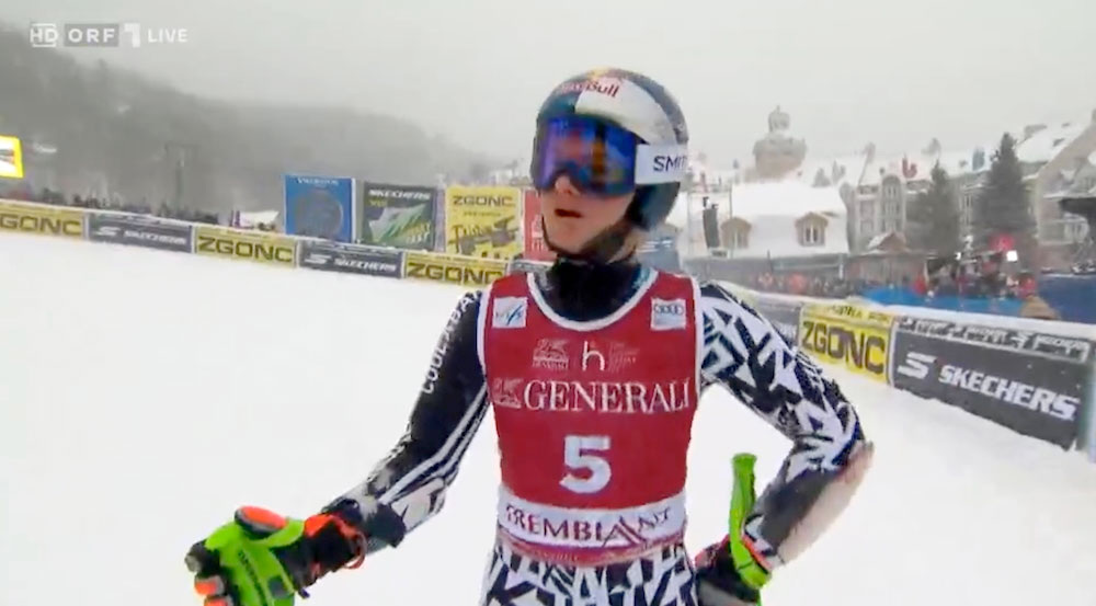 Осталась тройка лидеров. И теперь к финишу рвется Микаэла Шиффрин. Наверху видимость по-прежнему плохая, но этот участок очень короткий. Самая титулованная горнолыжница планеты два года назад была третьей в Мон-Тремблане. Мика стартует с запасом в 25 сотых. Идет на лучшее время, дальше удваивает отрыв, но на третьем секторе немного теряет темп и проигрывает 18 сотых. Все решится на выкате. И она вязнет внизу – Микаэла проигрывает 65 сотых, и это только четвертое место. Жаль! А Гренье уже на подиуме, Раст и Дирез поздравляют канадку, которая вернулась после серьезной травмы в прошлом сезоне.
