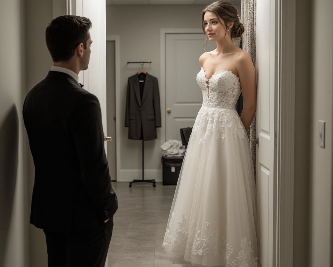 Она вздрогнула чуть заметно, но кивнула. Мужчины вышли, а дверь примерочной тихо закрылась. Она осталась одна, глядя на себя в зеркало.