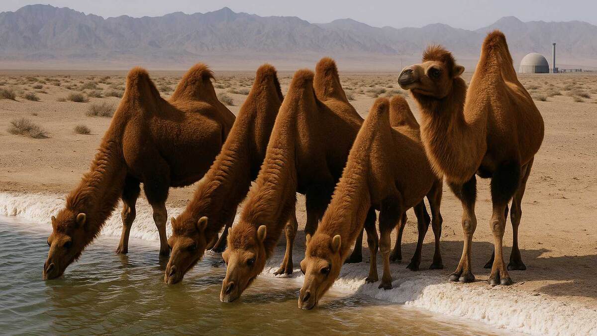 Этот материал с сайта Чжунго 24. В пустыне Гоби, где температура колеблется от +50°C летом до -40°C зимой, выживают только самые стойкие. Среди них — дикие бактрийские верблюды, которые научились пить воду с солёностью, втрое превышающей океанскую. Эти «корабли пустыни» обитают даже вблизи бывшего ядерного полигона Лобнор, где с 1964 по 1996 год Китай проводил испытания. Кажется, радиация и солёные источники стали для них частью повседневного меню. Учёные десятилетиями изучали феномен верблюдов Лобнора. Оказалось, их почки работают как высокотехнологичные фильтры, удаляя избыток соли без вреда для организма. Для сравнения: человек, выпив такую воду, получит тяжёлое отравление, а верблюд — запас влаги на неделю пути. Запросы вроде «верблюды ядерного полигона» или «как верблюды пьют солёную воду» отражают интерес к этой уникальной адаптации. Секрет выживания — в эволюционной гонке. Бактрийские верблюды тысячелетиями кочевали по солончакам Центральной Азии, где пресная вода — редкость. Их