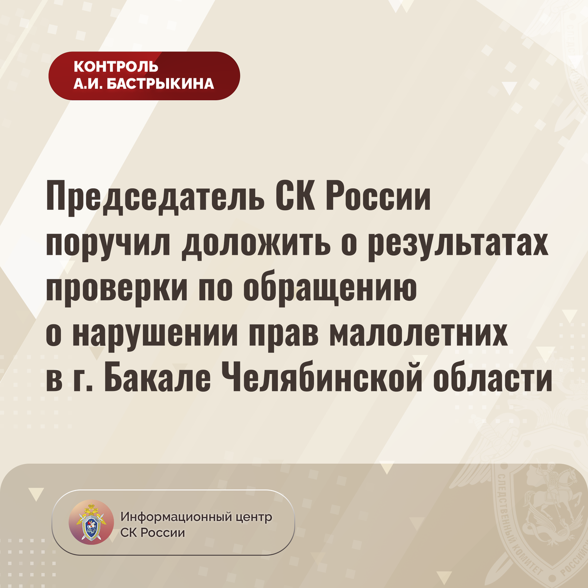 Председатель СК России поручил доложить о результатах проверки по обращению о нарушении прав малолетних в г. Бакале Челябинской области
