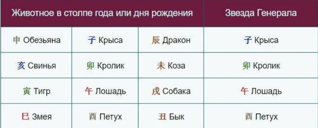 Звезда Генерала в карте Бацзы — это символическая звезда, связанная с энергией власти, лидерства и способностью командовать, вести за собой. Основное предназначение Звезды Генерала — усиление лидерских качеств, её обладатели часто отличаются целеустремленностью, смелостью, умением брать на себя ответственность, авторитетом, решительностью, умением вести за собой. Часто встречается в картах политиков, руководителей, военных, например она есть у Д.Трампа, Б.Асада, Д.Медведева, А.Белоусова, В.Володина. Ключевая особенность Звезды Генерала в том, что она сама по себе не имеет четко позитивной или негативной окраски. Она действует как усилитель или "командир" для других звезд или элементов, которые находятся с ней в одном столпе карты. Например, усиливая благоприятную звезду, она помогает добиться большего успеха, а находясь рядом с негативной, может усугубить её разрушительное влияние. Наиболее благоприятно когда звезда находится в столпе Месяца или Года, также, хорошо влияет и прихо